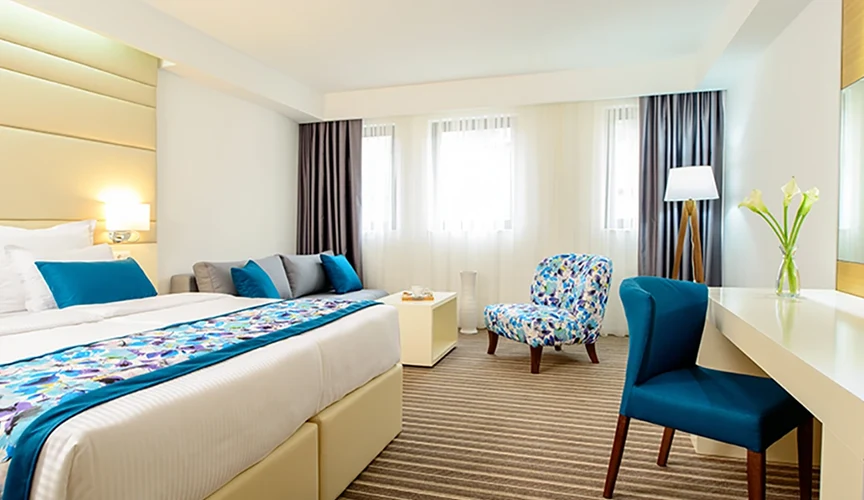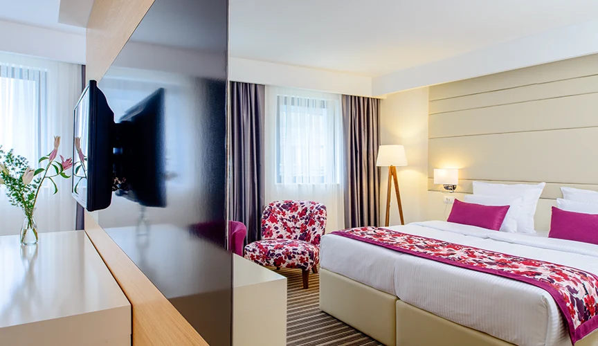 Hotel "Festival" spoj je modernog i tradicionalnog. Smješten nadomak starog gradskog jezgra, na lijevoj obali rijeke Miljacke, između dva povijesna mosta "Čobanije" i "Principovog".