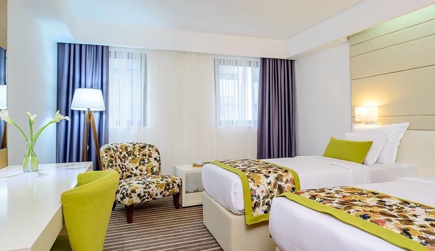 Dvadeset jednokrevetnih, dvokrevetnih i trokrevetnih soba raskošno su namještene i dizajnirane u kombinaciji retro i minimalistočkog stila. Gosti tokom boravka mogu uživati u samostalno pripremljenim napitcima u udobnosti vlastitih soba.